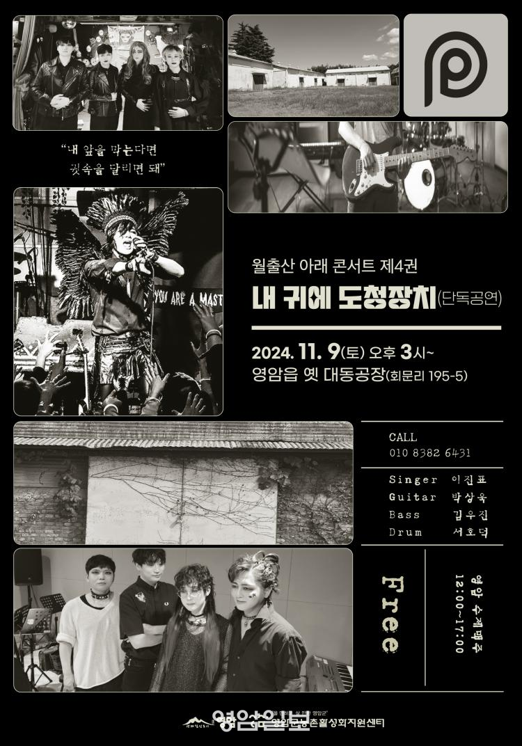 ·Ï±×·ì ³» ±Í¿¡ µµÃ»ÀåÄ¡´Â º¸Äà ÀÌÁøÇ¥, ±âŸ ¹Ú»ó¿í, º£À̽º ±è¿ìÁø, µå·³ ¼È£´ö µî 4ÀÎÁ¶ ·Ï¹êµå·Î °ü°´À» ²ø¾îµéÀÌ´Â ¿¬ÁֽǷ°ú È·ÁÇÑ ÆÛÆ÷¸Õ½º°¡ ÀλóÀûÀÎ ¹êµåÀÌ´Ù. Çà»ç¹®ÀÇ´Â ¿µ¾Ï±º³óÃÌȰ¼ºÈÁö¿ø¼¾ÅÍ(061. 473. 3331)·Î ÇÏ¸é µÈ´Ù.