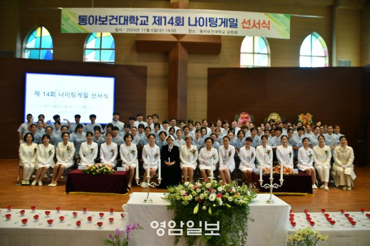 ÀÌ Çà»ç¸¦ ÁغñÇÑ µ¿¾Æº¸°Ç´ëÇб³ °£È£Çаú ±è±Ý³² ÇаúÀåÀº ¡°À̹ø ³ªÀÌÆÃ°ÔÀÏ ¼±¼½ÄÀ» ÅëÇØ ³ªÀÌÆÃ°ÔÀÏÀÇ ¼þ°íÇÑ °£È£ Á¤½ÅÀ» À̾î¹Þ¾Æ Àΰ£ÀÇ »ý¸í°ú Á¸¾ö¼ºÀ» Áß½ÃÇÏ¸ç ¼Ò¸íÀǽÄÀ» °¡Áö°í °£È£Àü¹®Á÷¿¡ Çå½ÅÇÏ´Â °£È£»ç·Î ¼ºÀåÇÏ±æ ¹Ù¶õ´Ù¡±°í °Ý·ÁÇß´Ù.