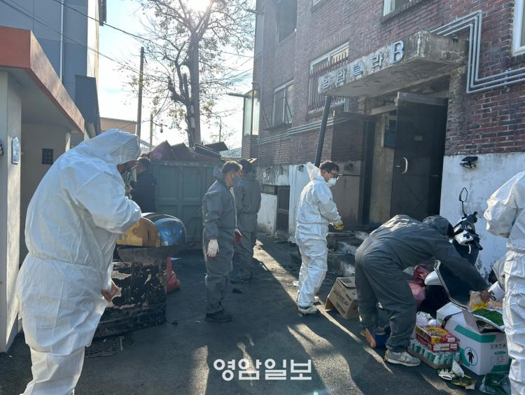 °¢ ´Üü ±¸¼º¿øµé·Î ±¸¼ºµÈ 30¿© ¸íÀÇ ÇÇÇØ º¹±¸ ºÀ»çÀÚµéÀº, À̳¯ Æó±â¹°°ú ÀÜ¿©¹°À» Á¤¸®Çϰí, ¿·ÁýÀ¸·Î ÇÇÇØ°¡ ¿Å°Ü°¡Áö ¾Êµµ·Ï Áý¾ÈÀ» Á¤¸®Çϸç ÀçÇØ º¹±¸·Î ±¸½½¶¡À» Èê·È´Ù.