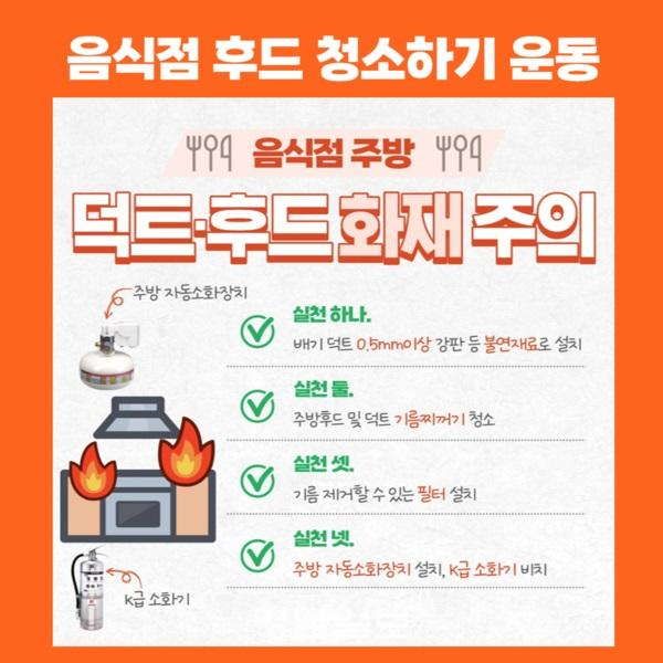 ÁÖ¹æ ÈÀ縦 ¿¹¹æÇϱâ À§ÇØ À½½ÄÁ¡ °ü°èÀÚ´Â ¸î °¡Áö ½Çõ »çÇ×À» ÁؼöÇØ¾ß ÇÑ´Ù. ù ¹øÂ°·Î, ¹è±â ´öÆ®´Â 0.5mm ÀÌ»óÀÇ °ÆÇ µî ºÒ¿¬Àç·á·Î ¼³Ä¡ÇØ¾ß ÇÑ´Ù. ÀÌ´Â ÈÀç ¹ß»ý ½Ã È¿° È®»êÀ» ¸·¾Æ ÇÇÇØ¸¦ ÃÖ¼ÒÈÇÒ ¼ö ÀÖ´Â Áß¿äÇÑ Á¶°ÇÀÌ´Ù.