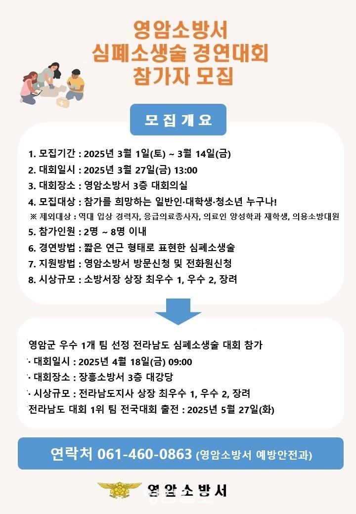 À̹ø ´ëȸ´Â 2025³â 3¿ù 27ÀÏ(±Ý) 13½Ã, ¿µ¾Ï¼Ò¹æ¼ 3Ãþ ´ëȸÀǽǿ¡¼ °³ÃֵǸç, Âü°¡¸¦ Èñ¸ÁÇÏ´Â ÀϹÝÀÎ, ´ëÇлý, û¼Ò³â ´©±¸³ª Áö¿øÇÒ ¼ö ÀÖ´Ù. ´Ü, ¿ª´ë ÀÔ»ó °æ·ÂÀÚ, ÀÀ±ÞÀÇ·áÁ¾»çÀÚ, ÀÇ·áÀÎ ¾ç¼º°ú ÀçÇлý, ÀÇ¿ë¼Ò¹æ´ë¿øÀº Âü°¡°¡ Á¦ÇѵȴÙ. Âü°¡ ÆÀÀº 2~8¸íÀ¸·Î ±¸¼ºµÇ¸ç, ½ÉÆó¼Ò»ý¼úÀ» ªÀº ¿¬±Ø Çü½ÄÀ¸·Î Ç¥ÇöÇØ °æ¿¬À» ÆîÄ¡°Ô µÈ´Ù.