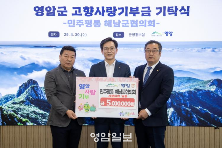 ÇÏ·ç ÀüÀÎ 4/30ÀÏ ¹ÎÁÖÆòÈÅëÀÏÀÚ¹®È¸ÀÇ ÇØ³²±ºÇùÀÇȸ(ȸÀå À±¿µ»ï)°¡ ¿µ¾Ï±º¿¡ °íÇâ»ç¶û±âºÎ±Ý 500¸¸¿øÀ» º¸³»¿Ô´Ù.