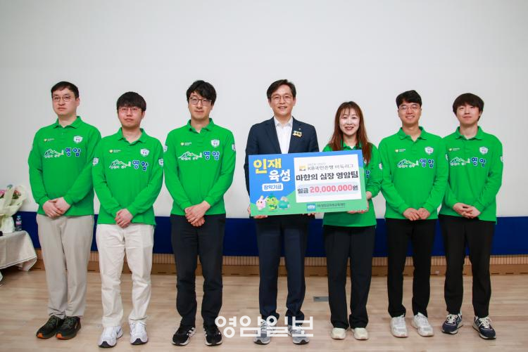 ¸¶ÇÑÀÇ ½ÉÀå ¿µ¾ÏÀÇ ¼ö¼®°¨µ¶ÀÎ Á¶ ±¹¼ö°¡, 2ÀÏ ¹ÙµÏÆÀ°ú ¿µ¾Ï±ºÃ»À» ã¾Ò°í, °¨µ¶°ú ¼±¼ö´ÜÀÌ ¿ì½Â»ó±ÝÀ¸·Î ¸¶·ÃÇÑ ÀÎÀçÀ°¼º±â±Ý 2,000¸¸¿øÀ» (Àç)¿µ¾Ï±º¹Ì·¡±³À°Àç´Ü¿¡ Àü´ÞÇÑ °Í.