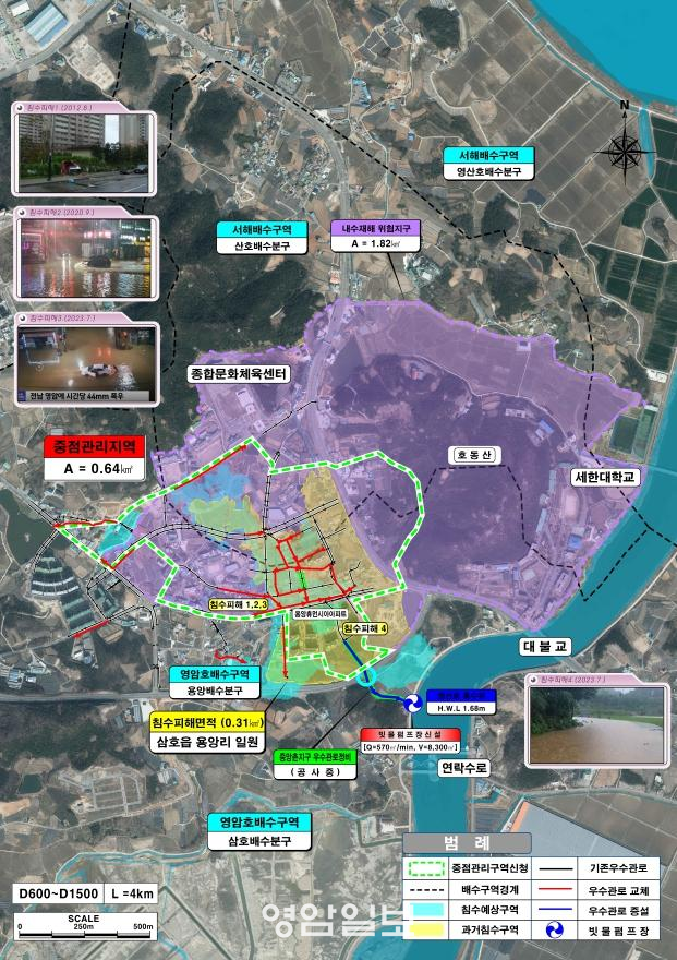 ƯÈ÷, »ó½Àħ¼öÁö¿ªÀÎ »ïÈ£À¾ ¿ë¾Ó¸® ÀÏ¿ø¿¡ ´ëÇØ Àû±ØÀûÀÎ ³ë·Â°ú Çù·ÂÀ¸·Î 2023³â 10¿ù'»ïÈ£ ¿ë¾ÓÁö±¸ ÇϼöµµÁßÁ¡°ü¸®Áö¿ª'À¸·Î ÁöÁ¤µÇ¾î 2027³â±îÁö ÃÑ »ç¾÷ºñ 318¾ï¿ø(±¹ºñ 60%, ±ººñ 40%)ÀÌ ÅõÀÔµÇ¾î ¿ì¼ö°ü·Î(L=3.64km)Á¤ºñ, À¯¼öÁö, ºø¹°ÆßÇÁÀå µîÀ» ¼³Ä¡ÇÏ´Â »ç¾÷ÀÌ ÃßÁøµÇ¸ç, °ü·Ã ÇàÁ¤ÀýÂ÷ ¿Ï·áÈÄ 25³â¸» Âø¼öÇÒ °èȹÀÌ´Ù.