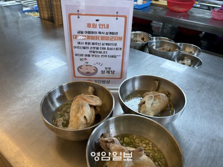 À̳¯ ÈÄ¿ø¹ÞÀº »ï°è´ßÀº ±âÂù¹ä»ó¿¡¼ ¾î¸£½Åµé²²¼ Á÷Á¢ Á¶¸®ÇÏ¿©, ³²Ç³°í·ÉÀÚº¹ÁöÁÖÅà ÀÔÁ־½Å°ú Àα٠Áö¿ª ÁÖ¹Î, ½Ä´ç ÀÌ¿ëÀÚ 200¸í¿¡°Ô µû¶æÇÑ »ï°èÅÁÀ¸·Î Á¦°øµÆ´Ù. º» Çà»ç´Â ¹«´õÀ§¿¡ ÁöÄ£ ¾î¸£½ÅµéÀÇ ±â·ÂÀ» ȸº¹ÇÏ°í °Ç°ÇÑ ¿©¸§³ª±â¸¦ ÀÀ¿øÇϱâ À§ÇØ ±âȹµÇ¾úÀ¸¸ç, Áö¿ª»çȸÀÇ Á¤ÀÌ ´ã±ä ¶æ±íÀº ³ª´®À¸·Î ¸¹Àº À̵鿡°Ô °¨µ¿À» ÀüÇß´Ù.