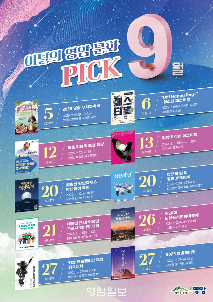 ¿ì½ÂÈñ ¿µ¾Ï±º¼ö´Â ¡°¹«È°úÃàÁ¦¿Í û¼Ò³â Æä½ºÆ¼¹úÀÇ ¿±â¸¦ À̾î, 9¿ù ¿µ¾ÏÀº »êÁ¶¡¤Ã»³â¡¤ÀüÅ롤Àι®ÇÐÀÌ ÇÔ²²ÇÏ´Â ¹®ÈÀÇ °èÀýÀÌ µÉ °ÍÀÌ´Ù. ¿µ¾Ï±º¹Î°ú °ü±¤°´ ¸ðµÎ°¡ ¿µ¾ÏÀÇ °¡À»À» ¸¸³£ÇÏ±æ ¹Ù¶õ´Ù¡±°í ÀüÇß´Ù.