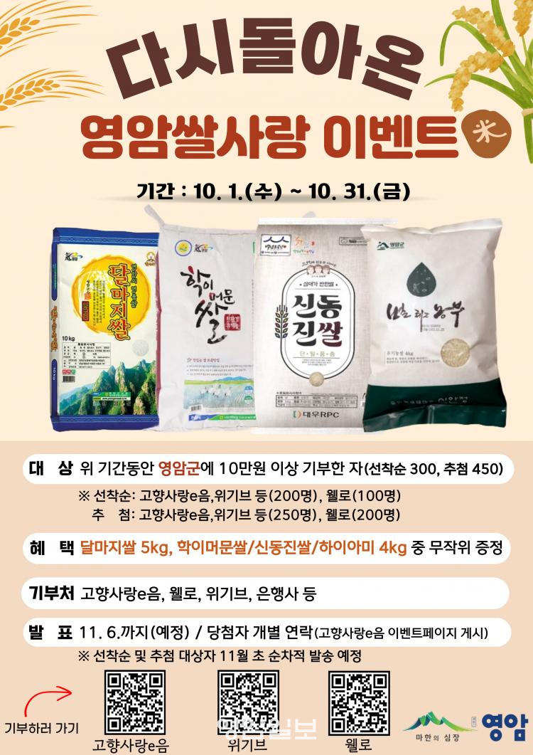 À̺¥Æ®¿¡´Â °íÇâ»ç¶ûeÀ½, À§±âºê, À£·Î µî¿¡ °íÇâ»ç¶û±âºÎÇϸé ÀÚµ¿ Âü¿©µÇ°í, ´ç÷ÀÚ ¹ßÇ¥´Â 11/6ÀϱîÁö °³º° ÀüÈ ¹®ÀÚ·Î ÀüÇÑ´Ù.