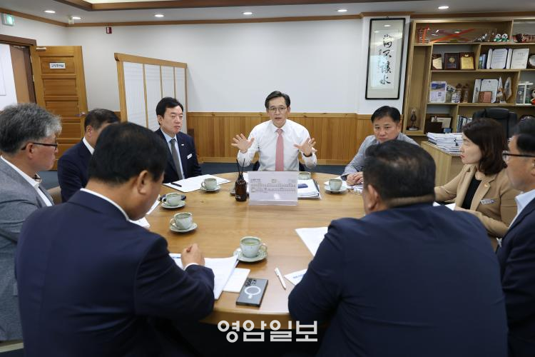 À̳¯ °£´ãȸ¿¡¼ ¿µ¾Ï±ºÀº Àü¶ó³²µµÀÇ¿ø¿¡°Ô ¡®¿¡³ÊÁö Áö»êÁö¼Ò ±×¸°½ÃƼ 100¡¯, ³ó¾î¹Î °øÀͼö´ç Áö±Þ È®´ë, ±¹Á¦ ¹ÙµÏ¿¬¼ö¿ø °Ç¸³ µî ¿ªÁ¡ ½ÃÃ¥À» ¼³¸íÇϰí, µµÁ¤ ¹Ý¿µ ¹× Áö¿ø ¹æ¾È¿¡ ´ëÇØ ÀǰßÀ» ³ª´³´Ù.