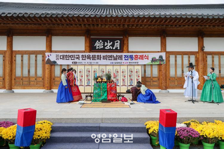 9ÀÏ ¿µ¾Ï¸ñÀç¹®ÈüÇèÀå¿¡¼ ¡®2025 ´ëÇѹα¹ ÇÑ¿Á¹®È ºñ¿£³¯·¹¡¯ Çà»çÀÇ Çϳª·Î ÀüÅëÈ¥·Ê½ÄÀÌ ÁøÇàµÆ´Ù.