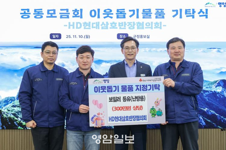 10ÀÏ HDÇö´ë»ïÈ£¹ÝÀåÇùÀÇȸ(ȸÀå ÀÌÁ¤Àç)°¡, ¾î·Á¿î ÀÌ¿ôÀÇ °Ç°ÇÏ°í µû¶æÇÑ °Ü¿ï³ª±â¸¦ À§ÇØ ½á´Þ¶ó¸ç 300¸¸¿ø »ó´çÀÇ ³¹æ¿ë º¸ÀÏ·¯ µîÀ¯¸¦ ¿µ¾Ï±º¿¡ Àü´ÞÇß´Ù.