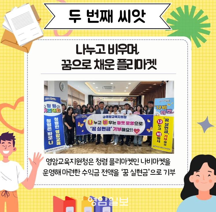 ¡®³ªºñ¸¶ÄÏ¡¯Àº ¡®³ª´©°í ºñ¿î´Ù¡¯´Â Àǹ̸¦ ´ã¾Æ Á÷¿øµéÀÌ ±âÁõÇÑ »ýȰ¿ëǰ, µµ¼, ¼Òǰ µîÀ» ÆÇ¸ÅÇÏ´Â Çü½ÄÀ¸·Î ÁøÇàµÇ¾ú´Ù. Çà»ç¿¡¼ ¹ß»ýÇÑ ¼öÀÍ±Ý Àü¾×Àº Àü³² Áö¿ª ÇлýµéÀÇ Áø·Î ¹× Àû¼º °³¹ßÀ» Áö¿øÇÏ´Â ¡®²Þ ½ÇÇö±Ý¡¯À¸·Î ±âºÎµÇ¾î ÇлýµéÀÇ ´Ù¾çÇÑ Áø·Î Ž»ö°ú ÀÚ±â°è¹ßÀ» À§ÇÑ Áß¿äÇÑ ÀçÁ¤Àû Áö¿øÀÌ µÉ ¿¹Á¤ÀÌ´Ù.