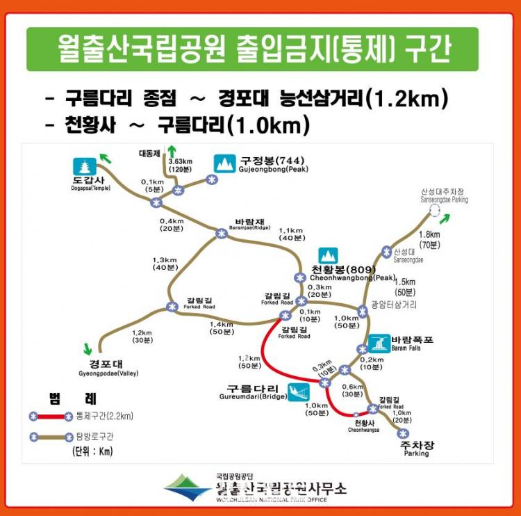 ÅëÁ¦µÇ´Â ޹æ·Î´Â µ¿Àý±â »ó½À °áºù¡¤³«ºù ¹ß»ýÀ¸·Î ¾ÈÀü»ç°í À§ÇèÀÌ ³ôÀº ¡â ±¸¸§´Ù¸® Á¾Á¡ºÎ ~ »çÀÚºÀ ~ °æÆ÷´ë ´É¼± »ï°Å¸®(1.2km), ¡â õȲ»çÁö ~ ±¸¸§´Ù¸®(1.0km) ±¸°£À¸·Î Ž¹æ°´ ¾ÈÀüÀ» À§ÇØ ¸Å³â ÃâÀÔÀ» ÅëÁ¦Çϰí ÀÖ´Ù.