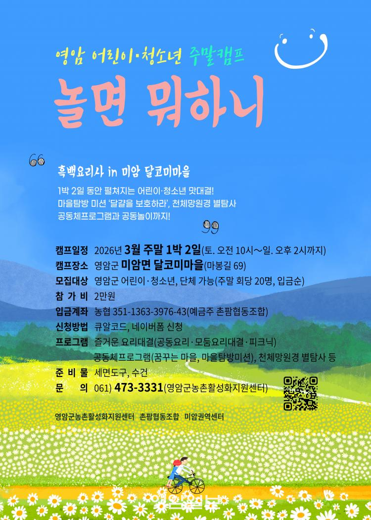 ¡®³î¸é ¹¹ÇÏ´Ï¡¯´Â ¾î¸°ÀÌ¿Í Ã»¼Ò³âÀÌ ´Ù¾çÇÑ È°µ¿À» ÅëÇØ ÀÚ½ÅÀÇ Àç´É°ú ¼ÒÁúÀ» ¹ß°ßÇϵµ·Ï ±âȹµÈ üÇèÇü ÇÁ·Î±×·¥ÀÌ´Ù. ¿¬±â, ºäƼ, ¿Ü±¹¾î, »ýÅ µî ¿©·¯ ºÐ¾ß¸¦ Àü¹®°¡¿Í ÇÔ²² üÇèÇÏ´Â ¹æ½ÄÀ¸·Î ¿î¿µµÇ¸ç, 3¿ù Ä·ÇÁÀÇ ÁÖÁ¦´Â ¡®¿ä¸®¡¯´Ù.