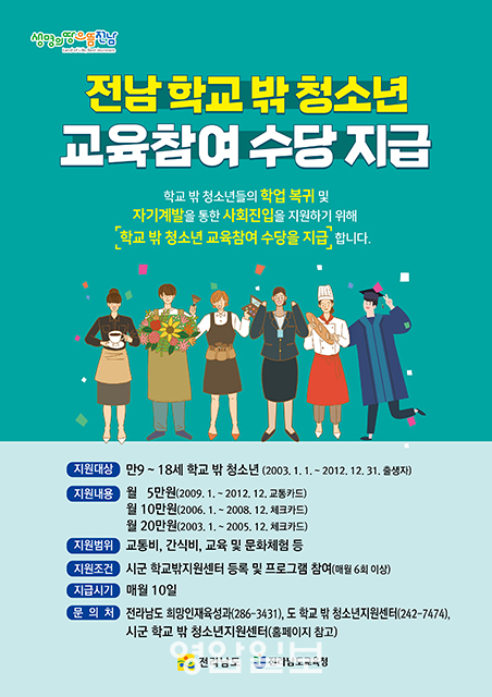 ÀÚ¼¼ÇÑ »çÇ×Àº µµ Èñ¸ÁÀÎÀçÀ°¼º°ú(061-286-3431) ¶Ç´Â µµ¿Í °¢ ½Ã․±º Çб³ ¹Û û¼Ò³âÁö¿ø¼¾ÅÍ(µµ ¼¾ÅÍ 061-242-7474)·Î ¹®ÀÇÇÏ¸é µÈ´Ù.