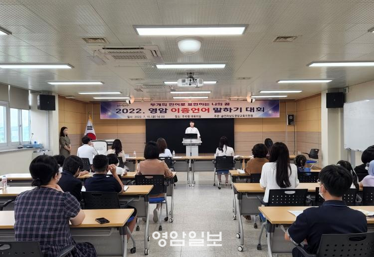 ÃÖ±¤Ç¥ ±³À°ÀåÀº ¡°¿µ¾ÏÀº ´Ù¹®ÈÇлýÀÇ ºñÀ²ÀÌ ³ôÀº Áö¿ªÀ¸·Î ´Ù¹®ÈÇлýÀÇ ±³À°¿¡ ¸¹Àº °ü½ÉÀ» °®°í ÀÖ´Ù. ¿µ¾Ï ÀÌÁß¾ð¾î¸»Çϱ⠴ëȸ´Â ÇлýµéÀÌ ¸ð±¹¾î¿¡ ´ëÇÑ Àڽۨ°ú ÀÚ±à½ÉÀ» °¡Áú ¼ö ÀÖ´Â ±âȸ°¡ µÇ¾ú´Ù. ¾ÕÀ¸·Îµµ ÀÌÁß¾ð¾î±³À°À» ÅëÇÏ¿© ±Û·Î¹ú ¿ª·®À» Ű¿ï ¼ö ÀÖµµ·Ï Àû±Ø Áö¿øÇϰڴÙ.¡±¶ó¸ç ¸»Çß´Ù.