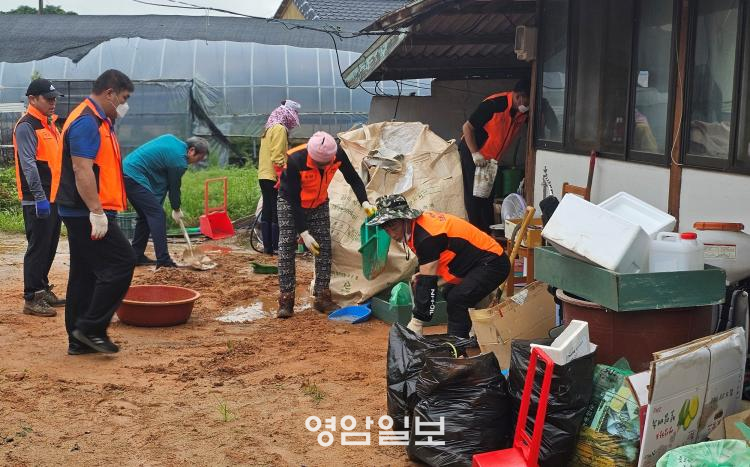 ½ÅºÏ¸éÀÇ¿ë¼Ò¹æ´ë¿Í ¸éÇàÁ¤º¹Áö¼¾ÅÍ Á÷¿ø, ¸¶À»ÀÌÀåÀ¸·Î ±¸¼ºµÈ 15¸íÀÇ ºÀ»ç´ÜÀº, À̳¯ Áý¿¡ ½×ÀÎ 3Åæ°¡·®ÀÇ ¾²·¹±â¿Í Áö³ Æø¿ì·Î ¹Ð·Á µé¾î¿Â Åä»ç¸¦ ¸»²ûÈ÷ Ä¡¿ü´Ù.