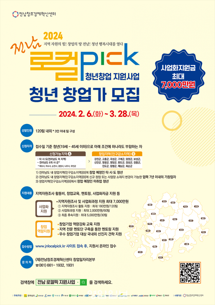 Âü¿©¸¦ ¹Ù¶ó´Â û³âÀº ¡®Àü³² ·ÎÄÃÇÈ Ã»³ââ¾÷ Áö¿ø»ç¾÷¡¯ ´©¸®Áý(www.jnlocalpick.kr)¿¡ »ç¾÷°èȹ¼¸¦ ÀÛ¼ºÇØ ½ÅûÇÏ¸é µÈ´Ù. ÀÚ¼¼ÇÑ »çÇ×Àº ´©¸®Áý °ø°í¹®À» ÅëÇØ È®ÀÎÇÒ ¼ö ÀÖ´Ù.