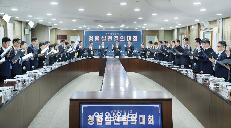 À̳¯ ȸÀÇ¿¡´Â ±è¿µ·Ï Àü³²µµÁö»ç ¹× °£ºÎ °ø¹«¿ø 30¿© ¸íÀÌ Âü¼®ÇØ ¡®Ã»·Å½Çõ °áÀÇ´ëȸ¡¯¸¦ ½Ç½ÃÇϰí, ¹ÝºÎÆÐ û·Å ÀÇÁö¿Í û·Å ¸Þ½ÃÁö¸¦ ´ãÀº ¡®Ã»·Å½Çõ´ÙÁü¡¯ ¼±Æ÷½ÄÀ» ÁøÇàÇß´Ù.