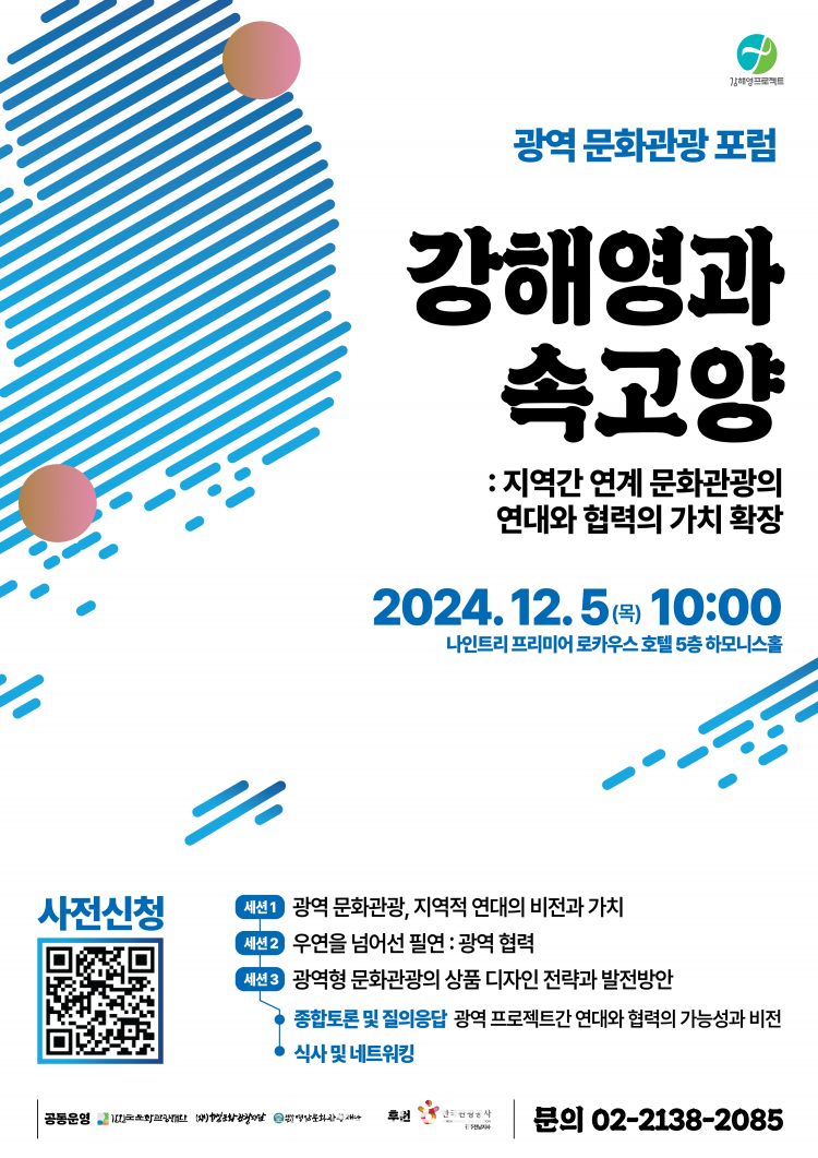<Áö¿ª°£ ¿¬°è ¹®È°ü±¤ÀÇ ¿¬´ë¿Í Çù·ÂÀÇ °¡Ä¡ È®Àå>¶ó´Â ÁÖÁ¦·Î ¿¸®´Â À̹ø Æ÷·³Àº °¢ Áö¿ª ¹®È°ü±¤Àç´Ü ¹× Áö¿ª °ü±¤ Àü¹®°¡ µîÀÌ ÇÑ ÀÚ¸®¿¡ ¸ð¿© °Áø‧ÇØ³²‧¿µ¾Ï±ºÀÇ Áö¿ª »ó»ý °øµ¿ °ü±¤ ºê·£µåÀÎ ¡®°ÇØ¿µ ÇÁ·ÎÁ§Æ®¡¯ÀÇ ½ÇÁúÀûÀÎ ÃßÁø¹æÇâ ¹× Àü·«¿¡ ´ëÇØ ³íÀÇÇÑ´Ù.