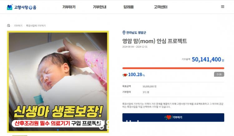 ¿µ¾Ï±ºÀº 20³â ¸¸¿¡ °³¼³µÈ ¡®°íÇâ»ç¶û ¼Ò¾ÆÃ»¼Ò³â°ú¡¯ÀÇ ³»³â ¿î¿µºñ¸¦ ¸ð±ÝÇÏ´Â ÁöÁ¤±âºÎ¸¦ ÇöÀç ÁøÇà ÁßÀÌ´Ù. ¿µ¾Ï ¸¾(mom) ¾È½É ÇÁ·ÎÁ§Æ®ÀÇ ½ÃÁð2 ¸ð±ÝÀÎ °ø°ø»êÈÄÁ¶¸®¿ø °ÇÃàºñ ÁöÁ¤±âºÎµµ Á¶¸¸°£ ÁøÇàÇÑ´Ù´Â °èȹÀÌ´Ù.